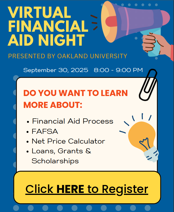 Attend Oakland University's Virtual Financial Aid Night, Sept. 30th