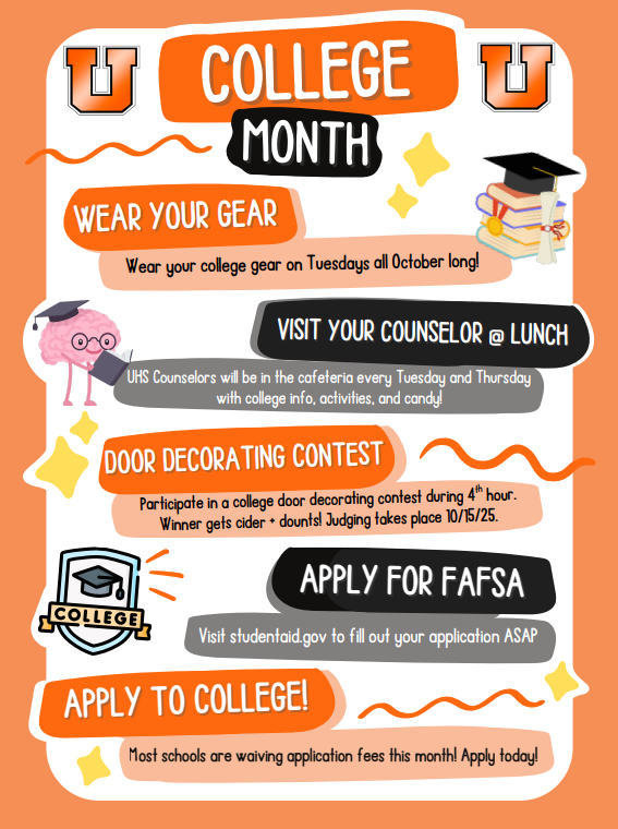 October is College Month! Celebrate with UHS Counselors by participating in events all month long: