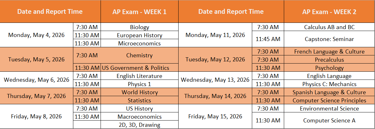 AP Exam Schedule